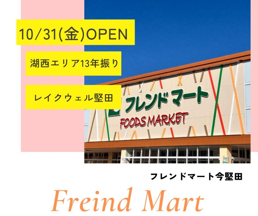 堅田にフレンドマートOPEN!湖西エリア13年振り 2025年10月20日 コメント 湖西エリア13年ぶりの新店!「フレンドマート今堅田店」オープン! 堅田エリアにお住まいの皆様、もう新しいショッピングスポットには行かれましたか? ...もっと読む